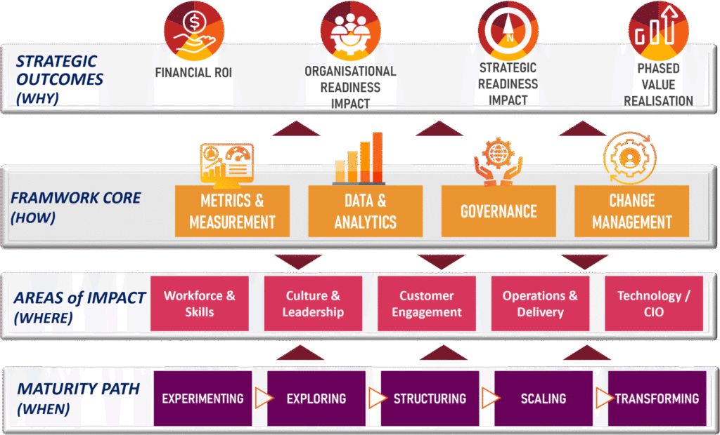 - Phased Value Realization: Tracking benefits over time, across adoption, reskilling, and redeployment.