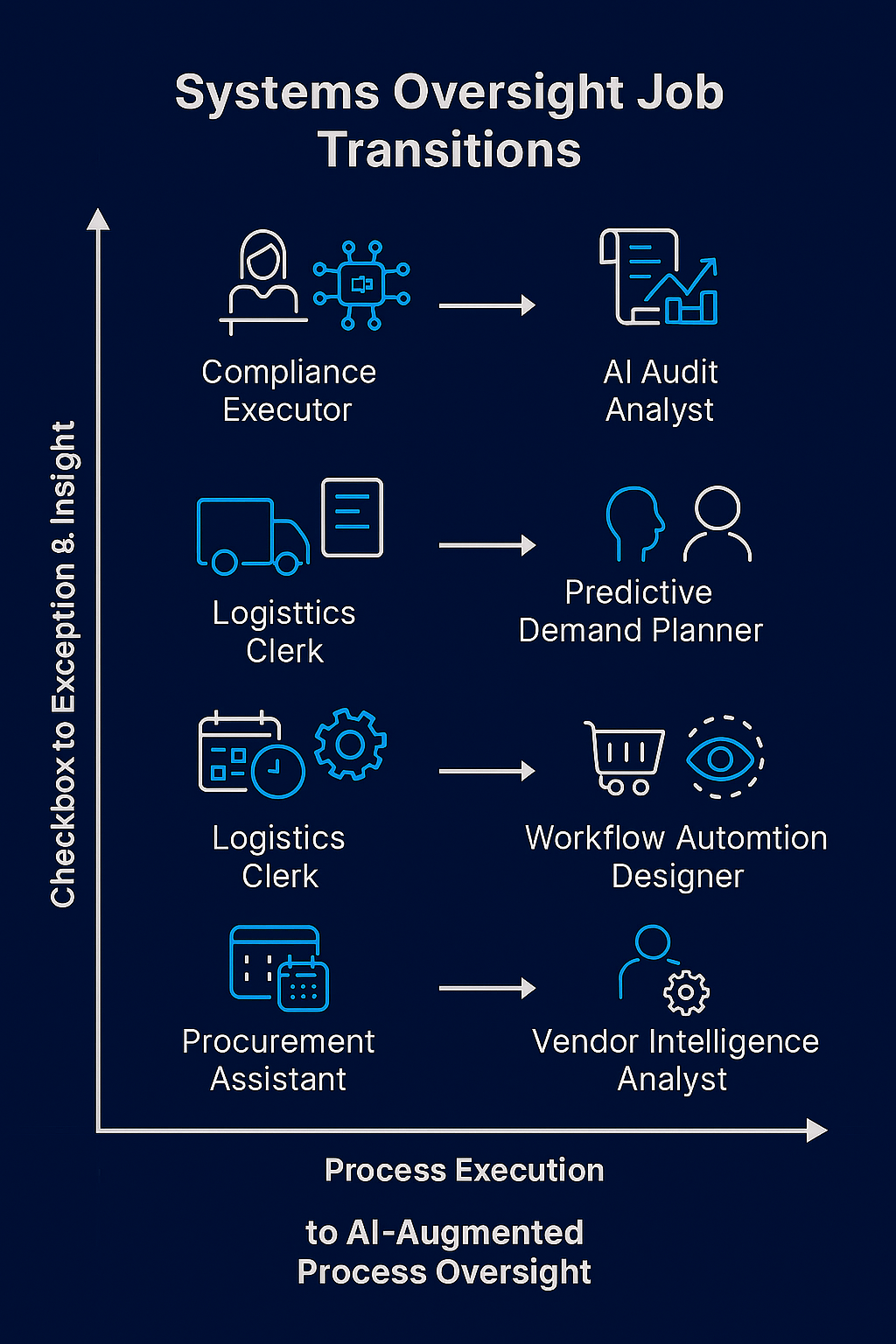 - Systems Oversight: Operational roles pivoting to AI-augmented process management